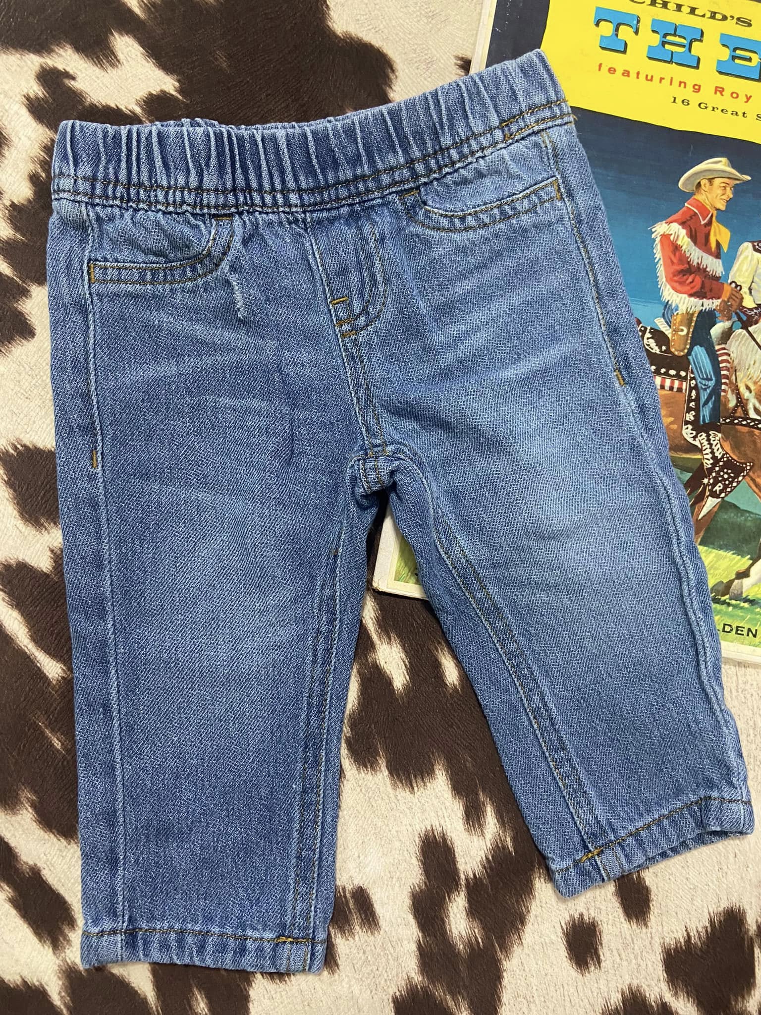 Get your little one wranglin' around in these gently used, good condition with a little distress below the front pocket. 6M Wrangler pants. Perfect for playtime or naptime, wrangle up some style for your little cowboy or cowgirl!